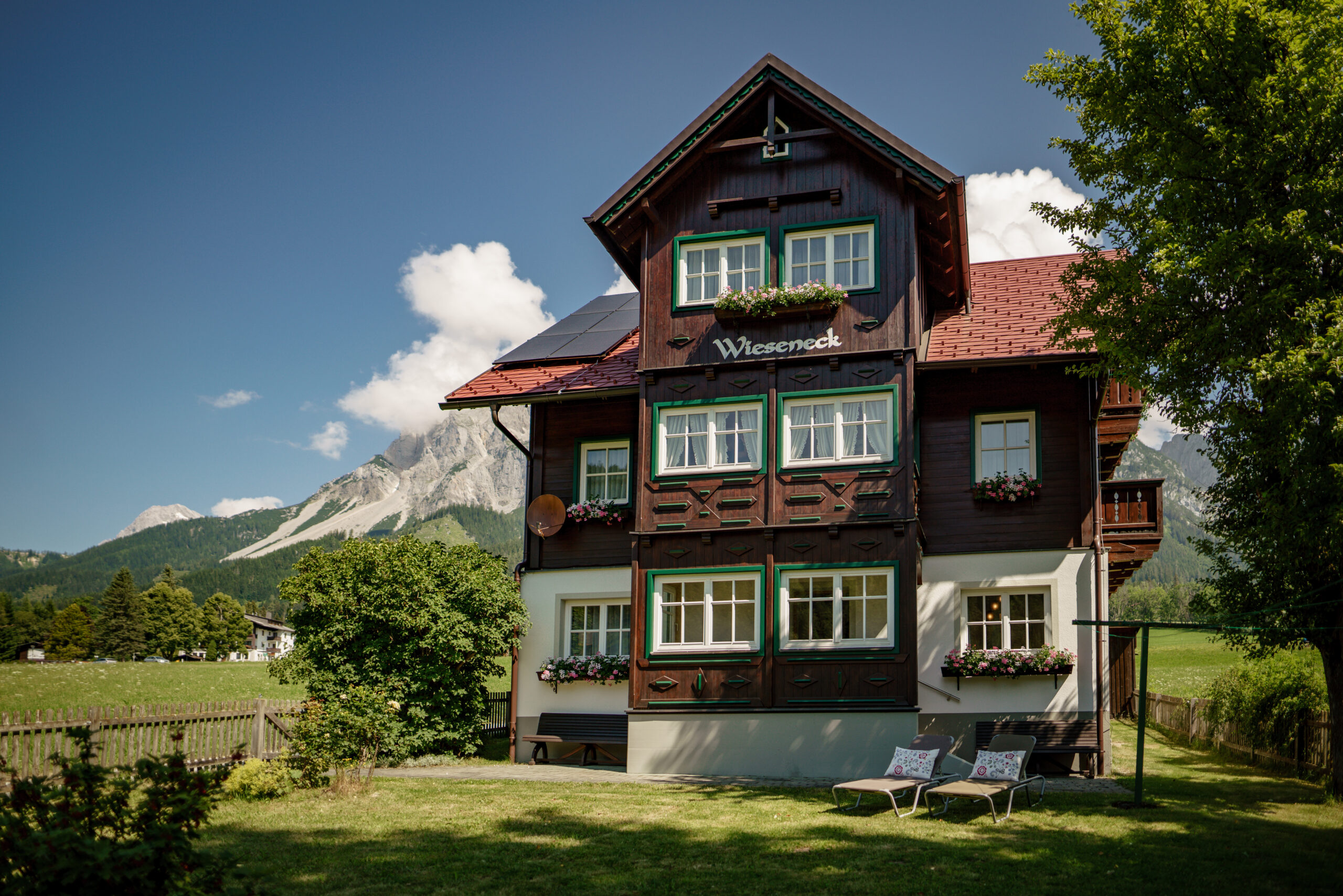Unser Wieseneck liegt alleinstehend inmitten von Bergwiesen in der Nähe von Ramsau Kulm. Mit einer traumhaften Aussicht auf die Ramsauer Bergwelt und die Schladminger Tauern. Wanderwege, MTB-Trails und im Winter die Loipen führen direkt am Haus vorbei. „Vom Bett auf die Loipe“. Restaurants, Supermarkt und Bushaltestellen sind in ein paar Minuten zu Fuß erreichbar.